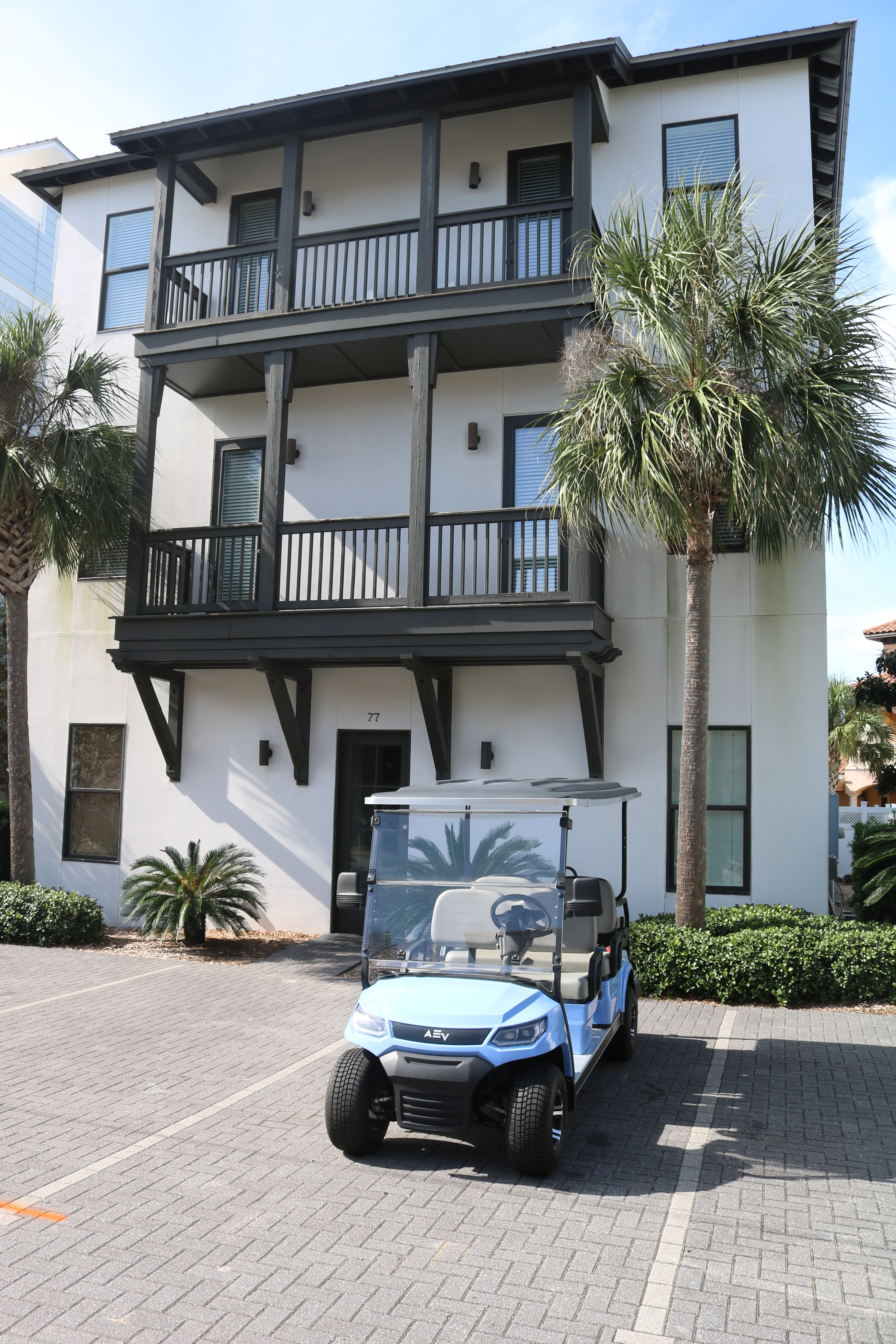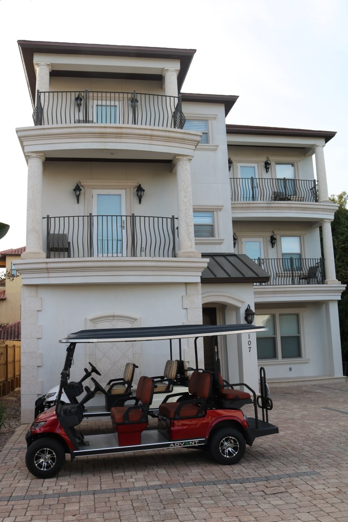 We are now pleased to offer our newest amenity, a fleet of 30, six-seater low speed vehicles, available for daily to weekly rentals. Every one of our golf carts is a 2023 EV model or newer with a top speed of 25 m.p.h. We offer the best rental rates anywhere in Miramar Beach and Crystal Beach.